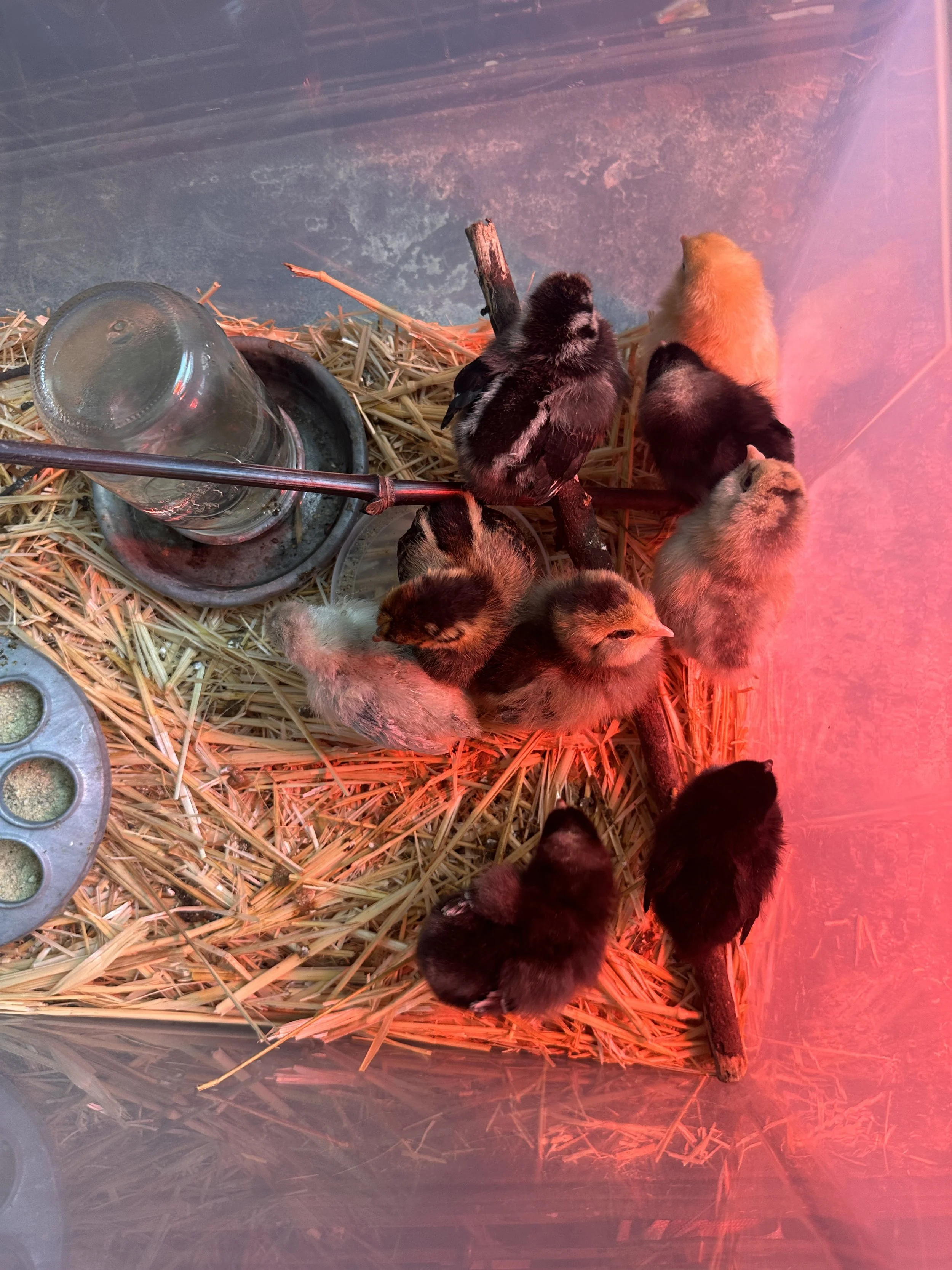 Like I said, the lust for chickens is real. A few days after getting these, I went to Concord Feed and picked out three more. I thought 3 little Wyandottes. They integrated with the 6 other chicks even though they were a bit bigger.