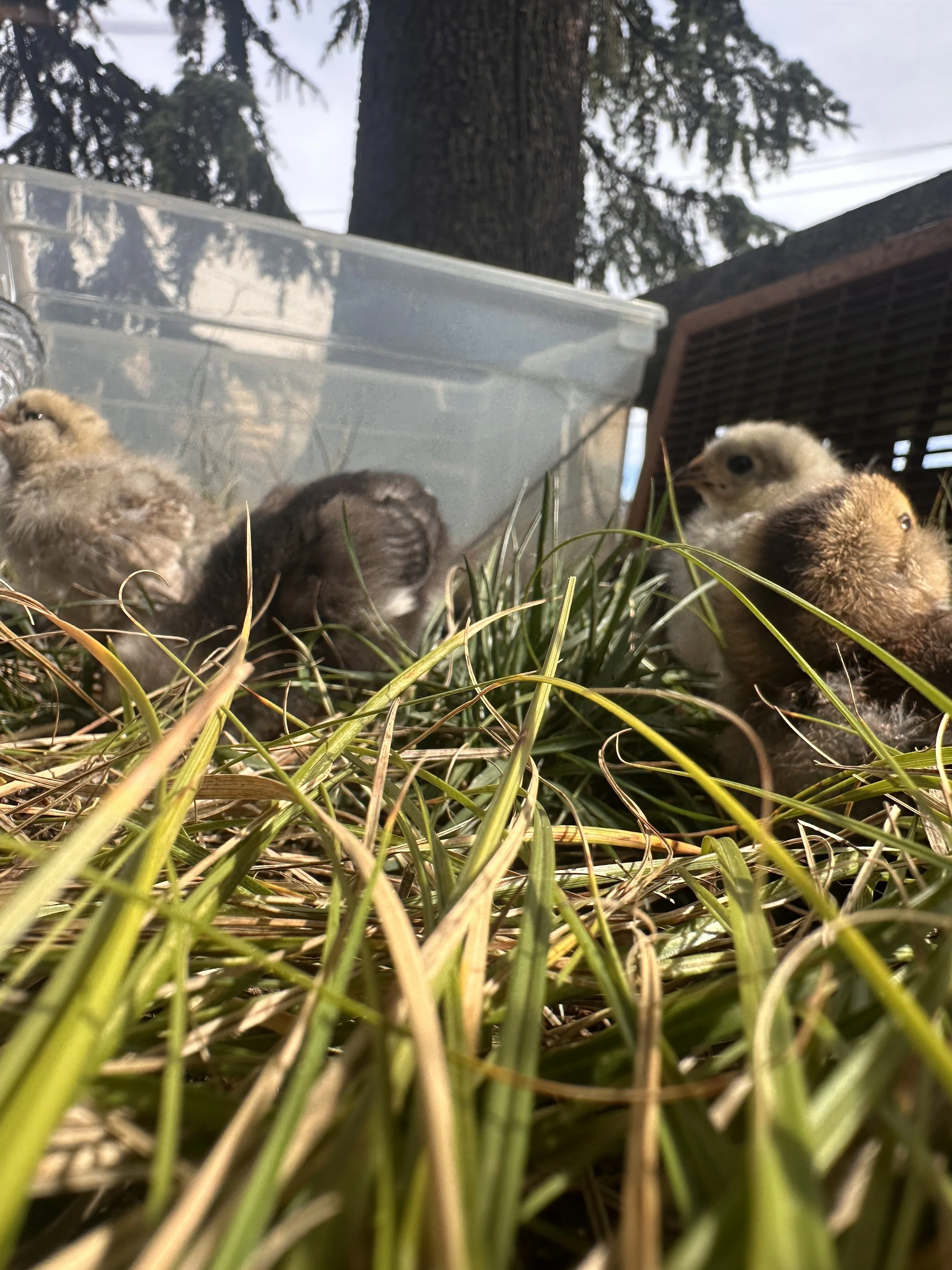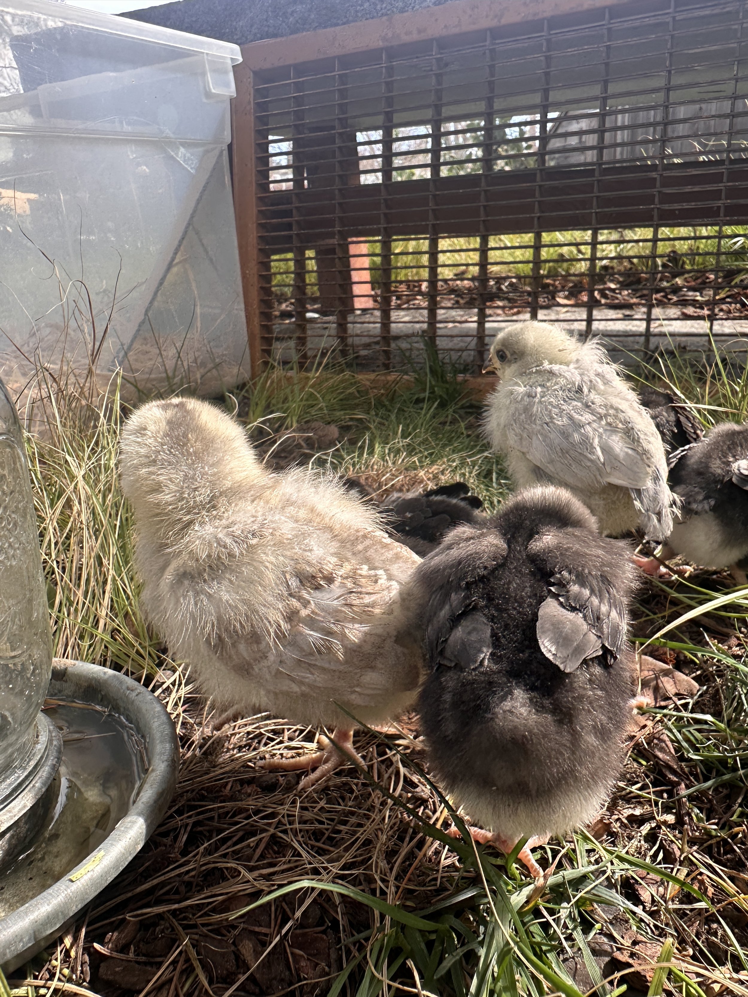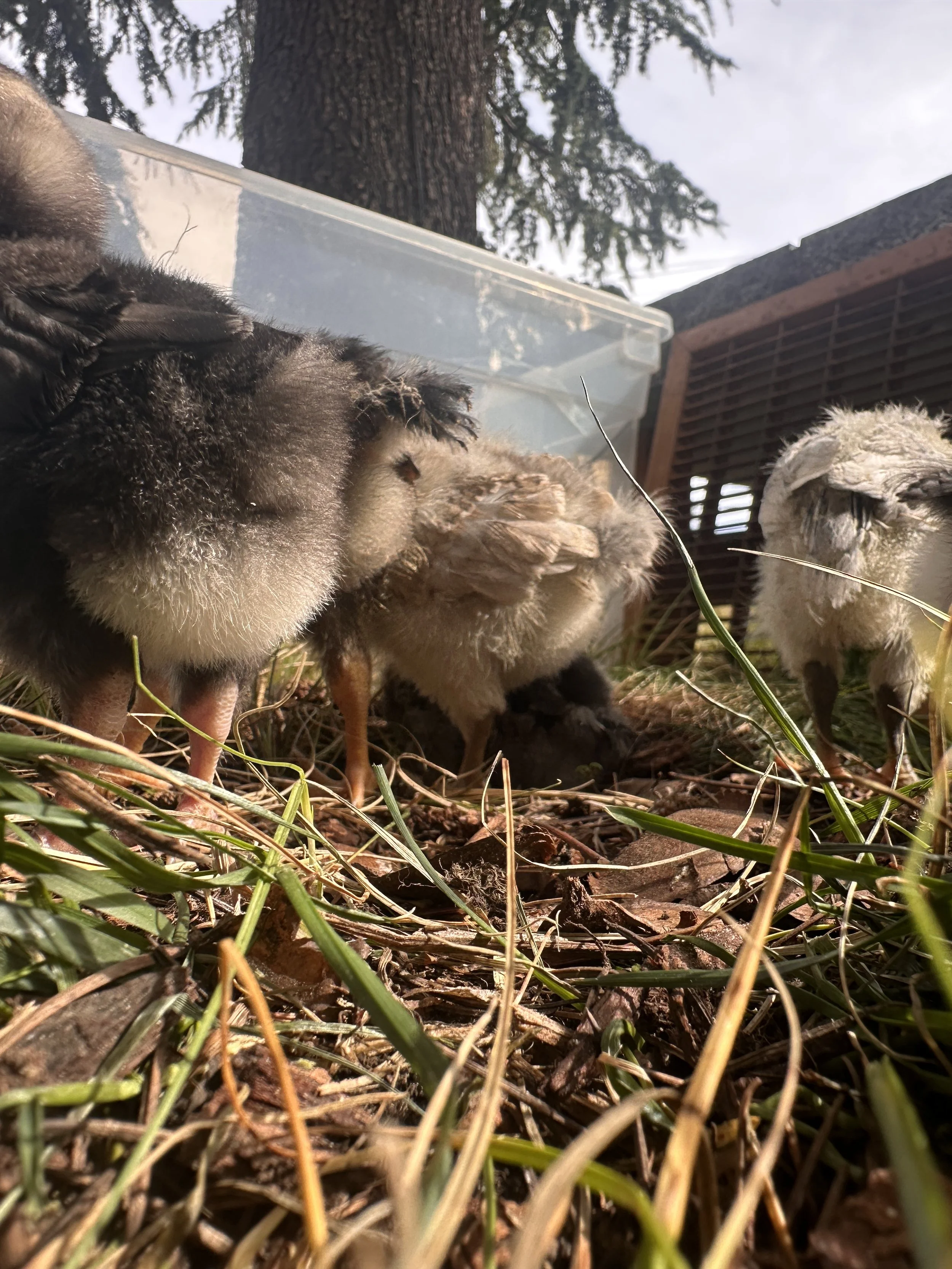 I was keeping them in the front entry room so I also wanted to make sure they got some good outside time to explore and peck around. They need to get grit from the local soil and learn about grass and bugs, etc.