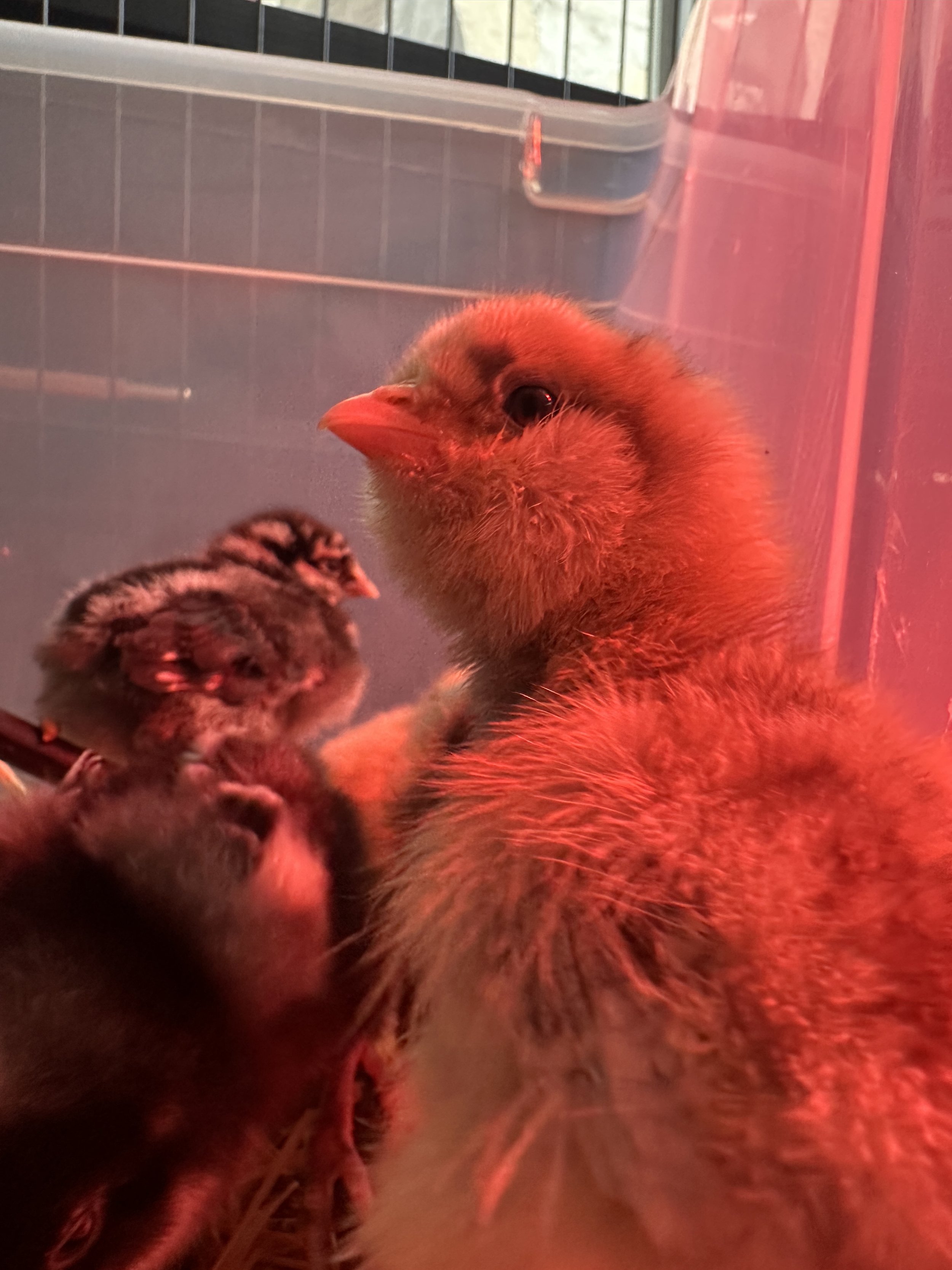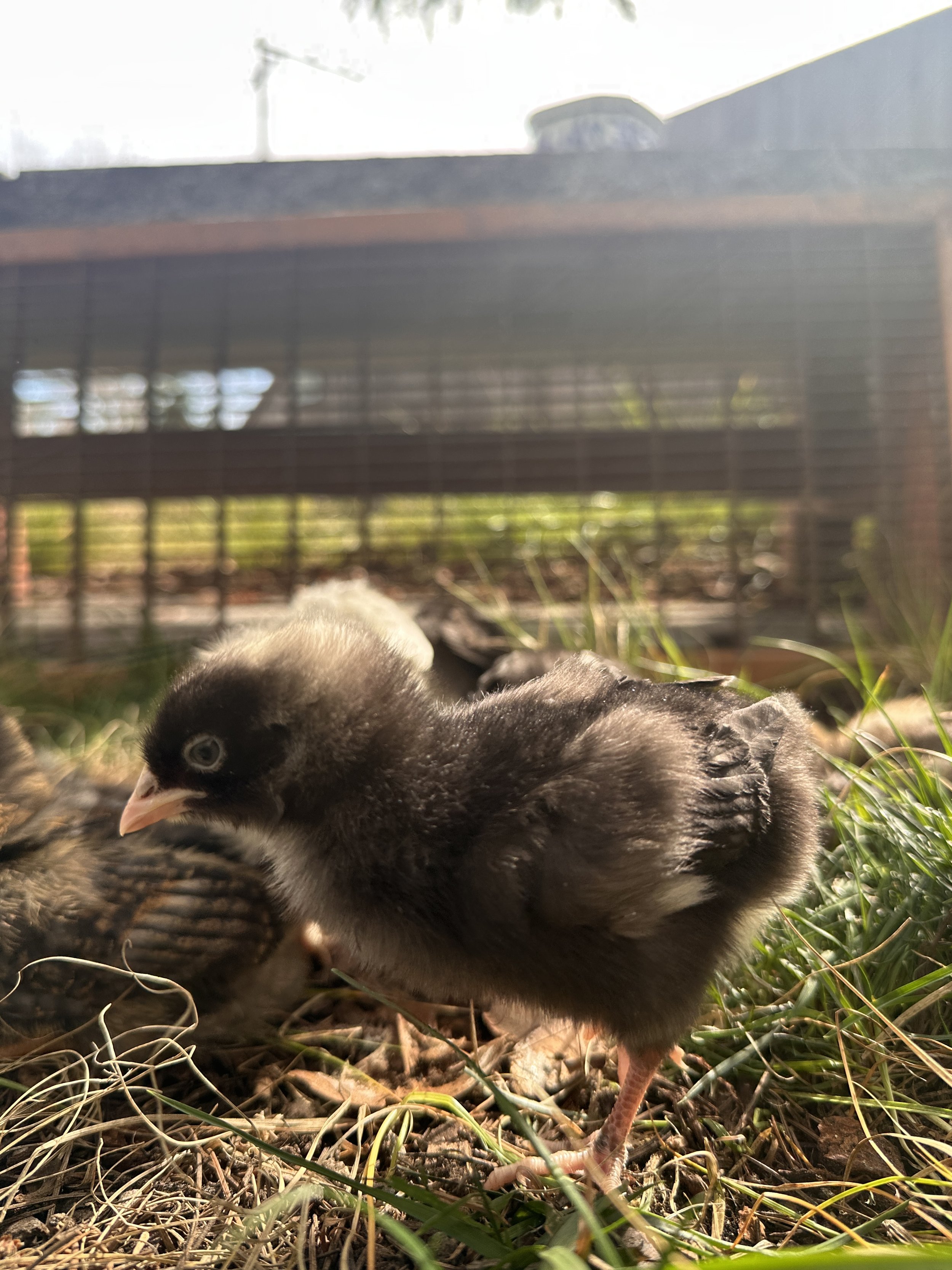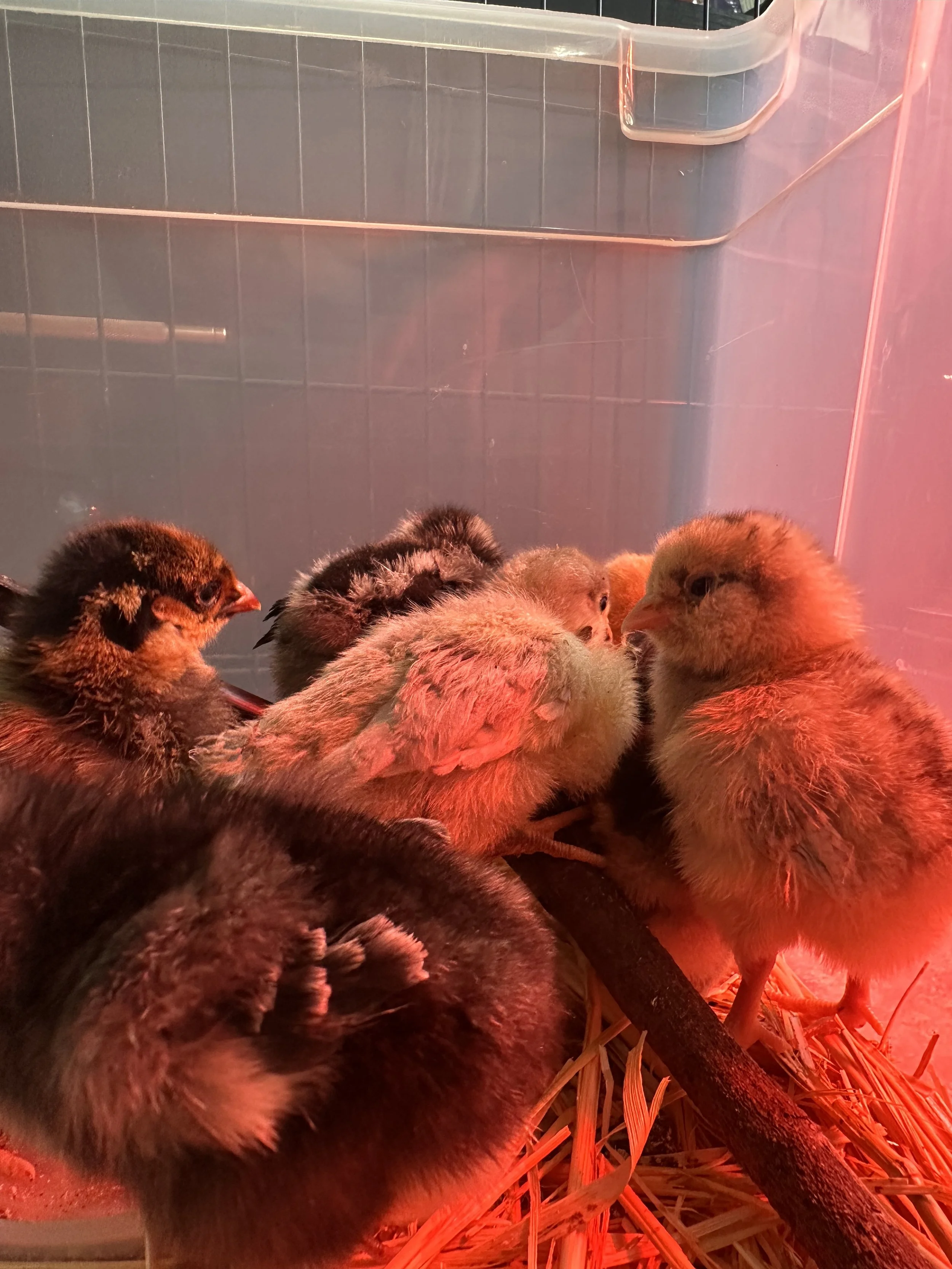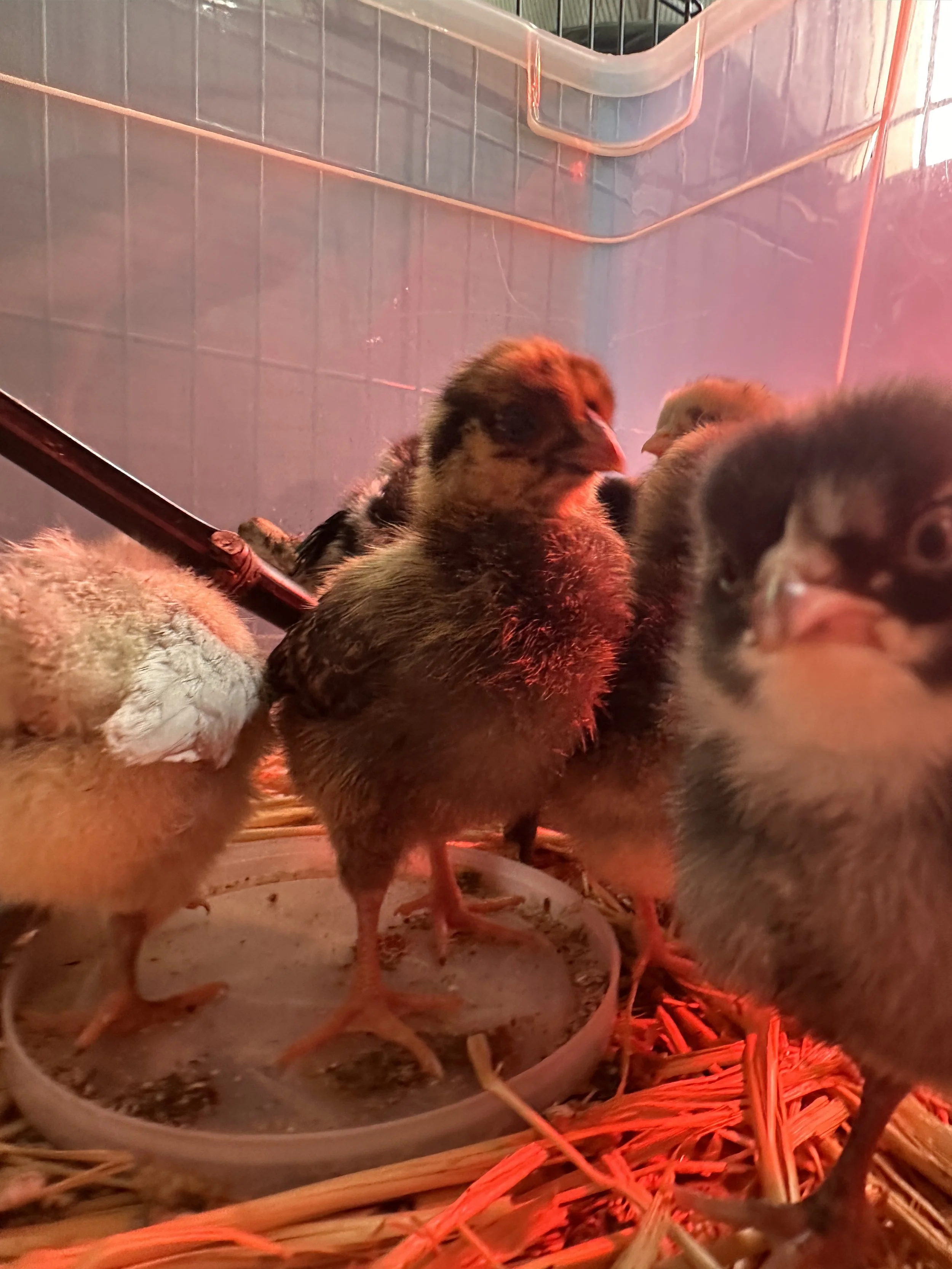 I was keeping them in the front entry room so I also wanted to make sure they got some good outside time to explore and peck around. They need to get grit from the local soil and learn about grass and bugs, etc.
