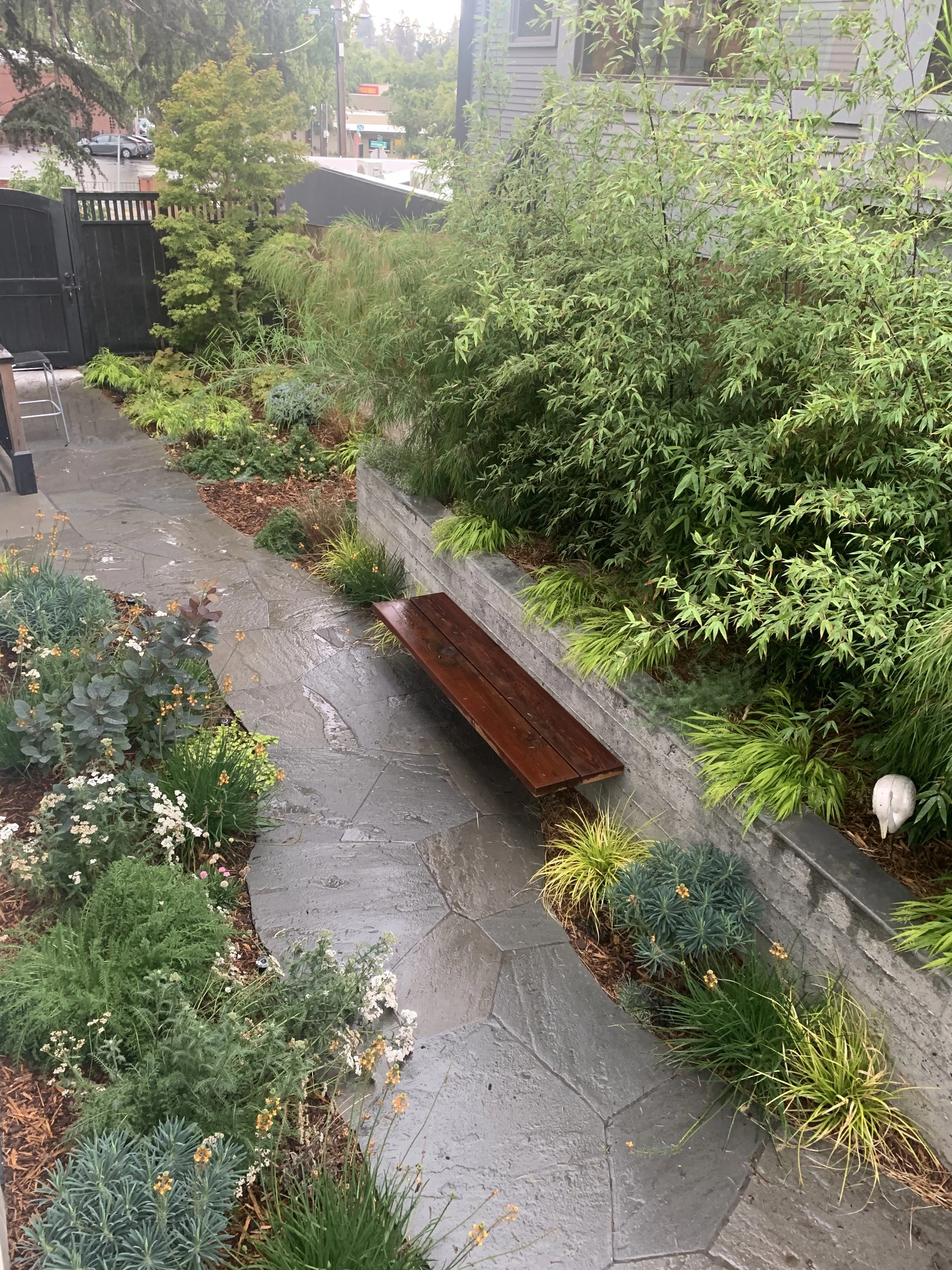 Wandering through the landscape in the front of the building I noticed that along the side by the train tracks the landscape continues. There is a regulation sized Bocce Court, a farther back behind the building there are tennis courts, picnic areas with tables and grills, a Little Free Library, and more native plants.