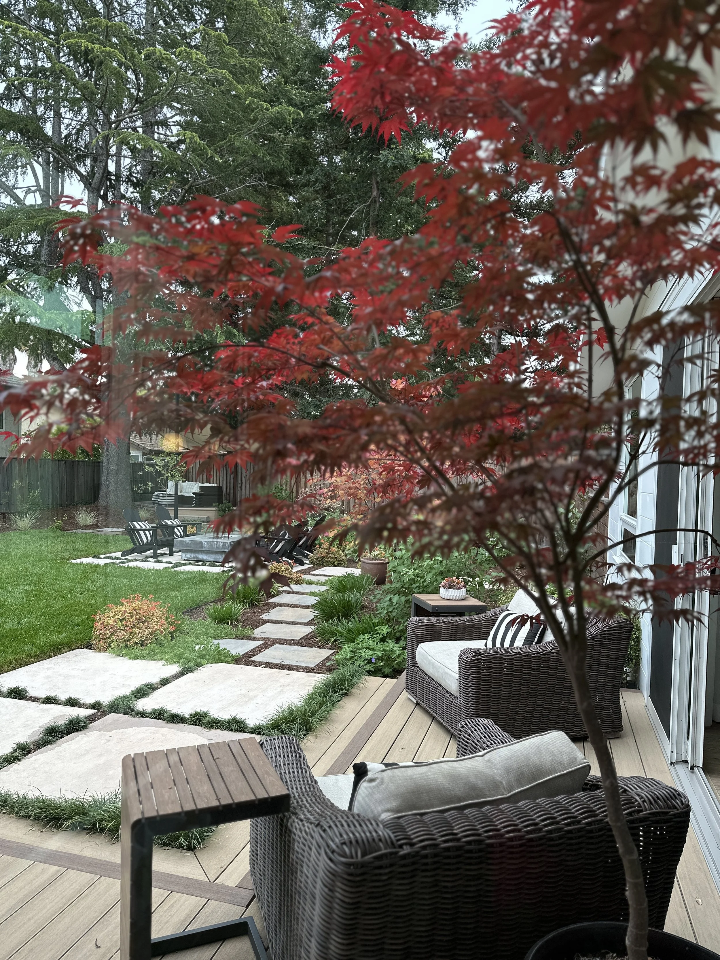 One detail they really wanted to incorporate was a Japanese-style wraparound deck, known as an engawa. From this deck they can comfortably observe and interact with the garden.