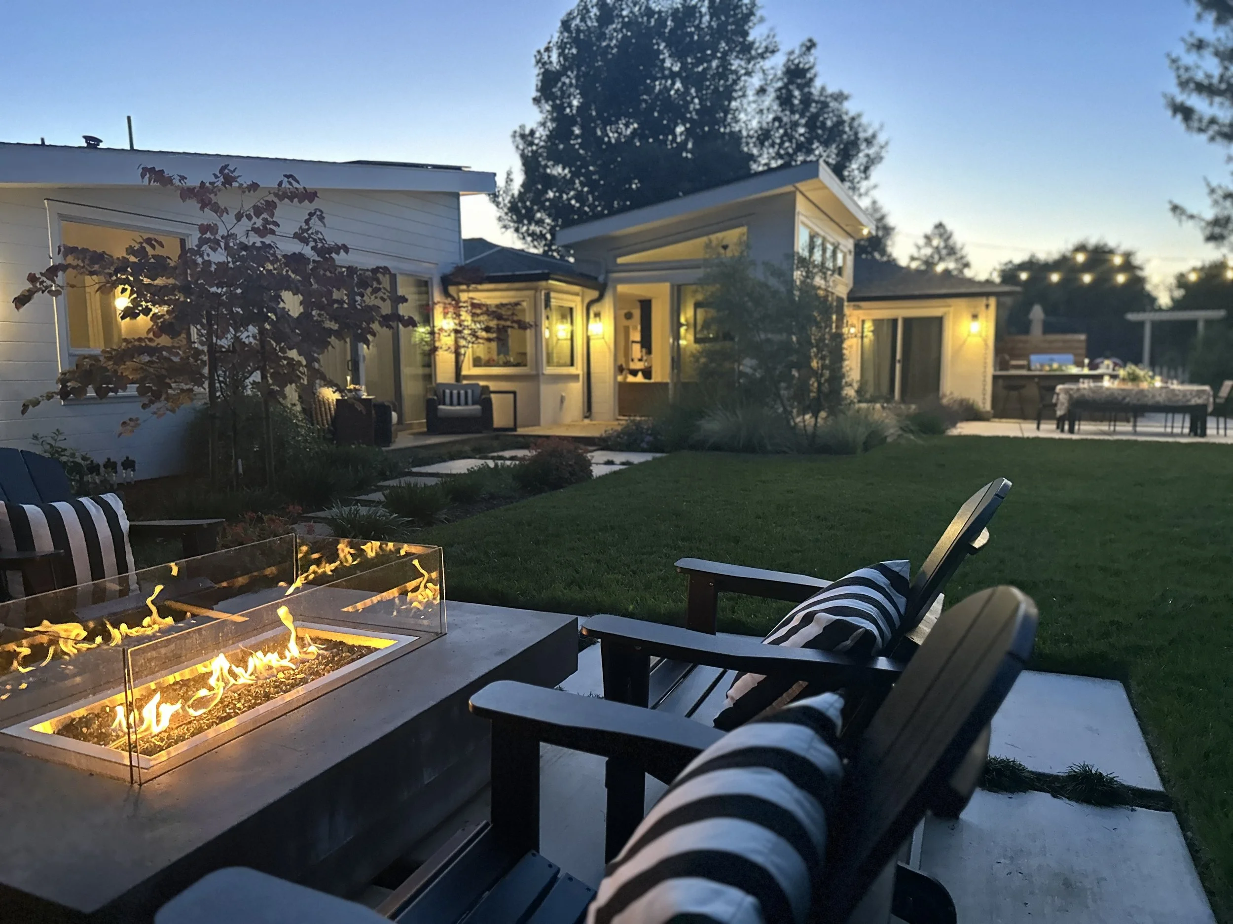 There are outdoor rooms for sitting with guests around fire pit, snuggling up with a good book, or cooking and eating with a group of friends.